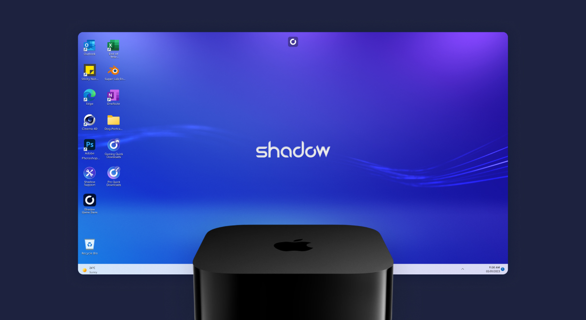 Enjoy your Shadow PC on your Apple TV and turn your screen into a full gaming or work station. Easy to use and just as powerful, perfect for gaming, streaming, from your couch.