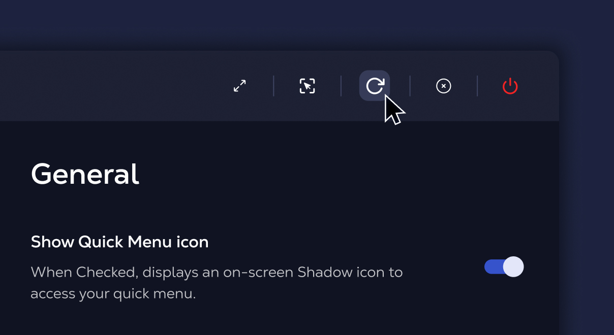 Quickly access essential controls for your Shadow PC using the Quick buttons in the Shadow overlay. Manage your experience smoothly without leaving your session.