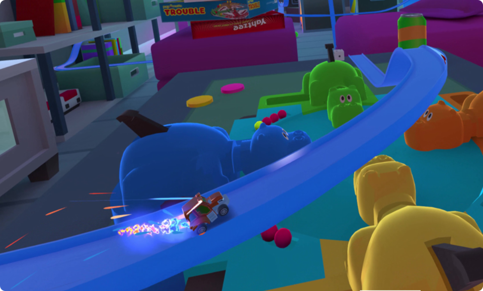 With Shadow PC and Shadow VR, experience the thrilling stunts and spectacular crashes of Micro Machines: Mini Challenge Mayhem from any computer or device. You just need to take your Oculus Quest with you, no need to carry a powerful gaming machine. Let your family and friends get blasted by this immersive toy racing experience at any moment and enjoy all the spectacular tracks of the game… Or even build your own ones! With the power of Shadow PC, no need to restrain your creativity in fear of performance issues!