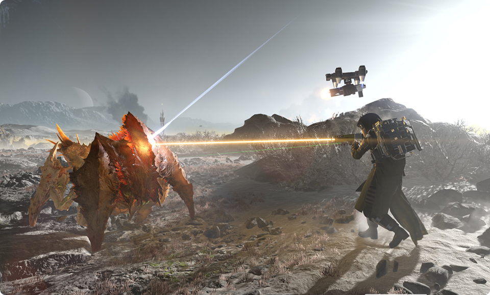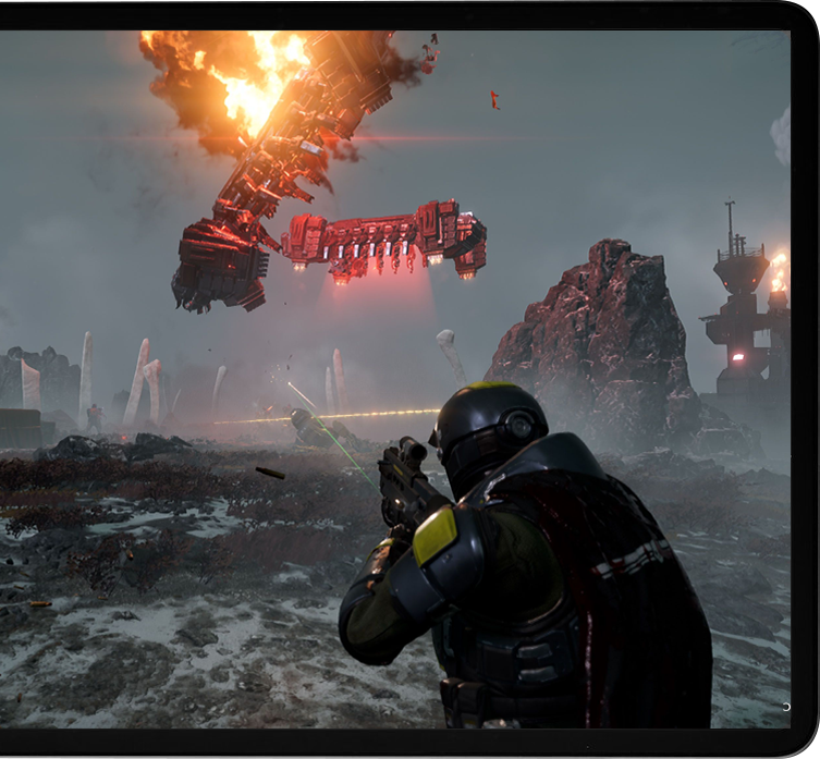 Experience the exhilarating missions of Helldivers II with the best technical setup when playing with Shadow PC! Whatever your strategy is to engage the fight, always enjoy a seamless gameplay with constant frame rate and amazing visual effects. Immerse yourself in the spectacular battles against alien enemies, whether you're playing solo or in co-op with friends, anytime, and from any of your devices, including Android and iPhone or iPad!