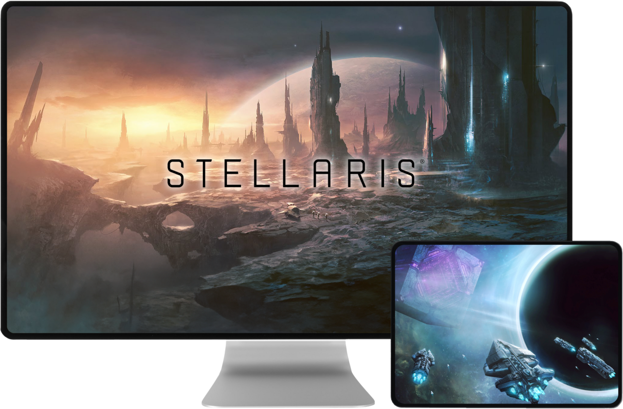 Stellaris’s captivating 4X gameplay demands hours of thrilling involvement and robust hardware to be properly played and mastered. With Shadow PC Power Offer, you’re playing with the same great setup from any device you want, at any time. Start a game at home, continue to play on your lunch break on your office computer, and finalize your strategic decisions for your next big battle on the go from your iOS or Android smartphone while keeping all your installed mods in place and perfectly set up!